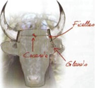 2) Le. taureau. (biou) sort du toril et cherche « son camp », un endroit dans le plan où il pourra se défendre (généralement un angle). La Présidence* annonce : le nom du taureau, le nom de la manade et les primes des attributs * (cocarde-glands). Lors des concours de Manades, le cocardier* (ou la vache cocardière) porte parfois la devise (couleurs de la rnanade accrochées sur le garrot) (non primée).